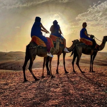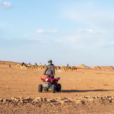 Reach the heart of the Agafay Desert. Though it's not sandy like the Sahara, its rolling rocky dunes create a dramatic and peaceful landscape.