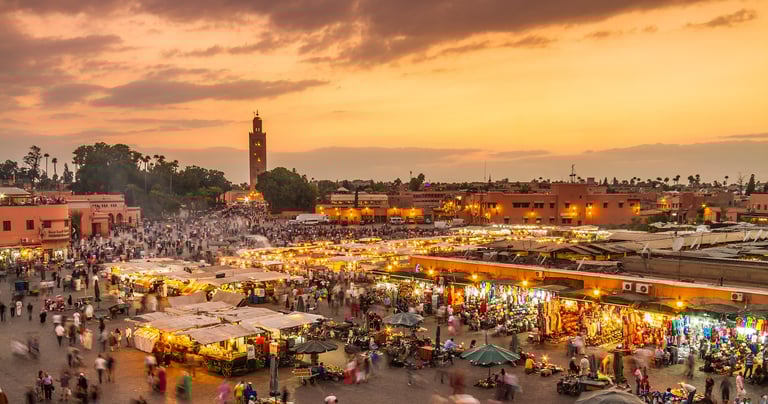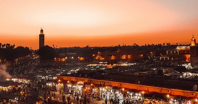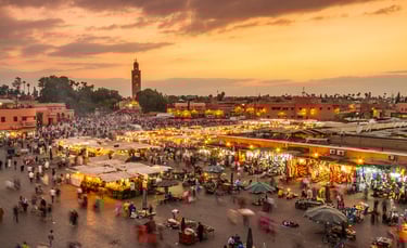 Selon l’heure d’arrivée, première immersion dans l’ambiance magique de Marrakech :