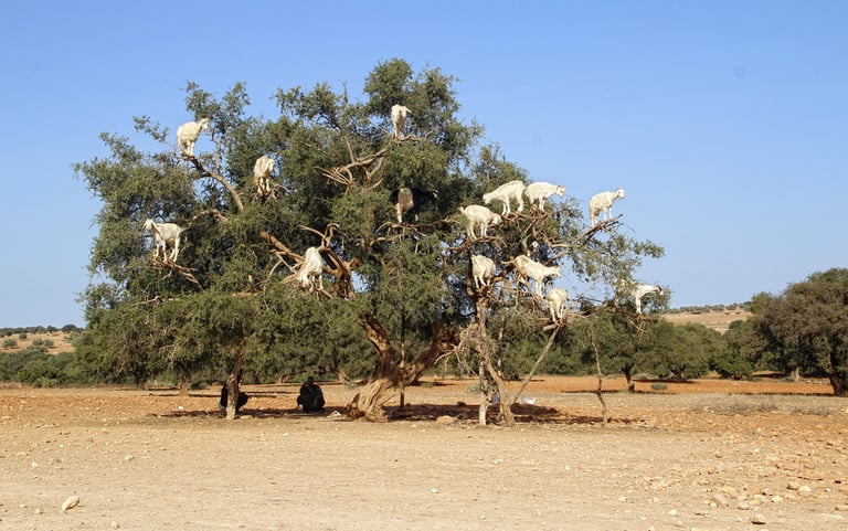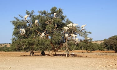 NKeep your eyes peeled for the famous "tree-climbing goats" who perch on Argan branches to eat the fruit.