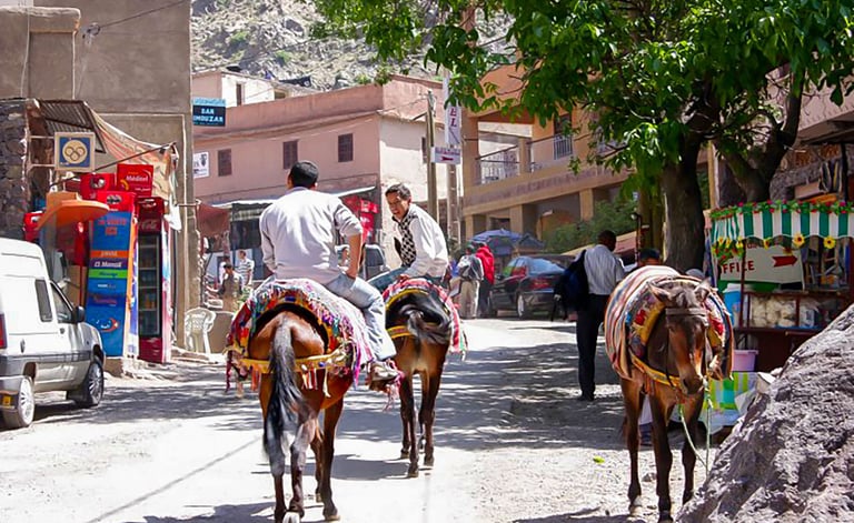 Arrive in Imlil ($1,740\text{m}$), the base for Mount Toubkal. To reach your lodge, enjoy a scenic mule trek or a light walk through terraced fields.