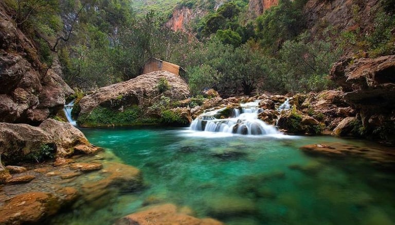 A guided trek through the Talassemtane National Park leads you to the "God’s Bridge" a massive natural stone arch—or the turquoise pools of the Akchour Waterfalls.
