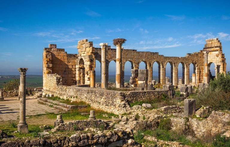 Explore the most significant Roman ruins in Morocco, featuring stunning floor mosaics and the soaring Triumphal Arch.